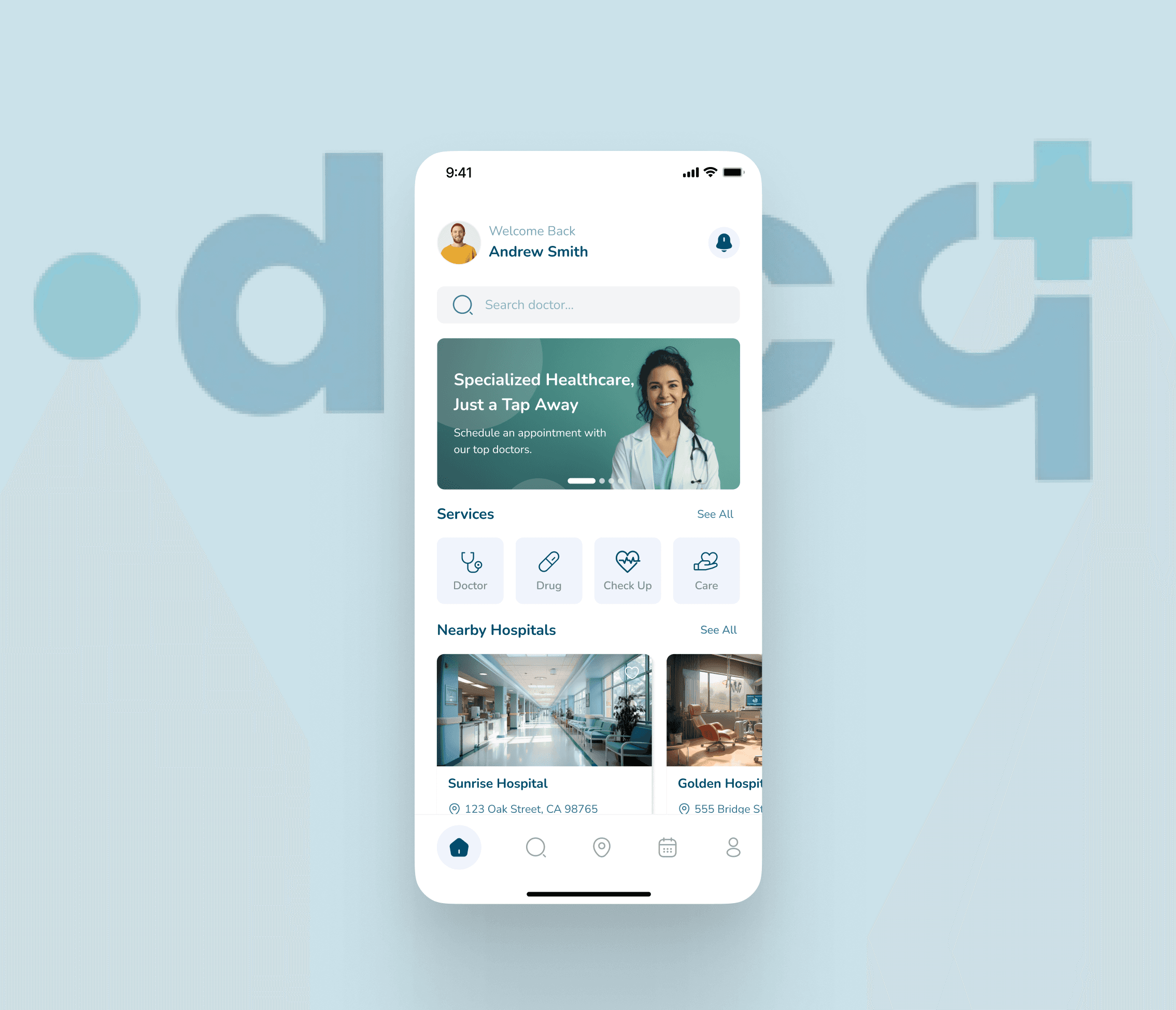 The goal was simple: help users connect with doctors, nurses, and diagnostic labs without visiting hospitals in person. The design made it easy to browse providers and confirm appointments in just a few taps.