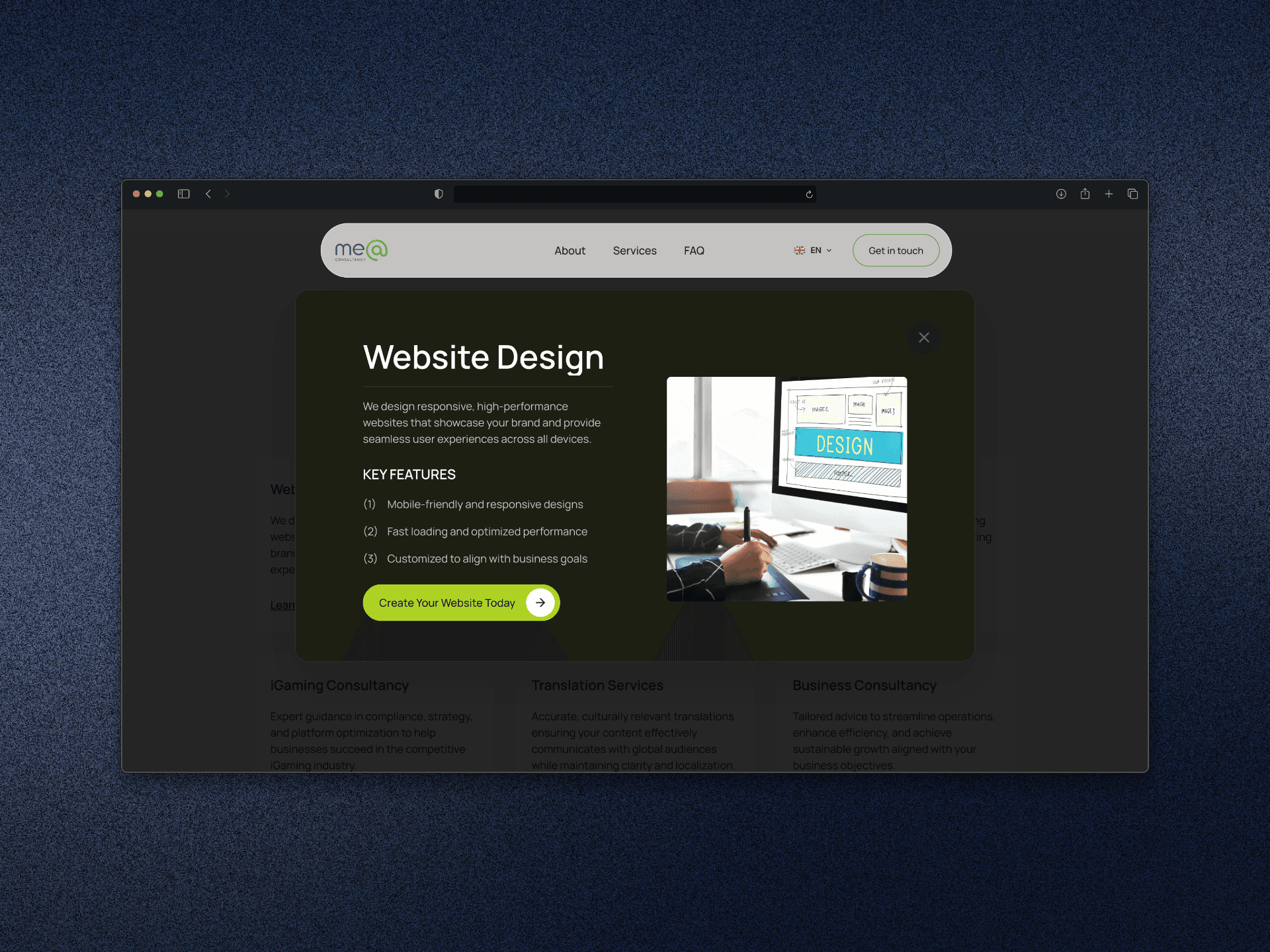MEA Consultancy needed a sharp, modern website that speaks to decision-makers across borders. The design balances professionalism with personality — helping the brand stand out in a competitive global market.