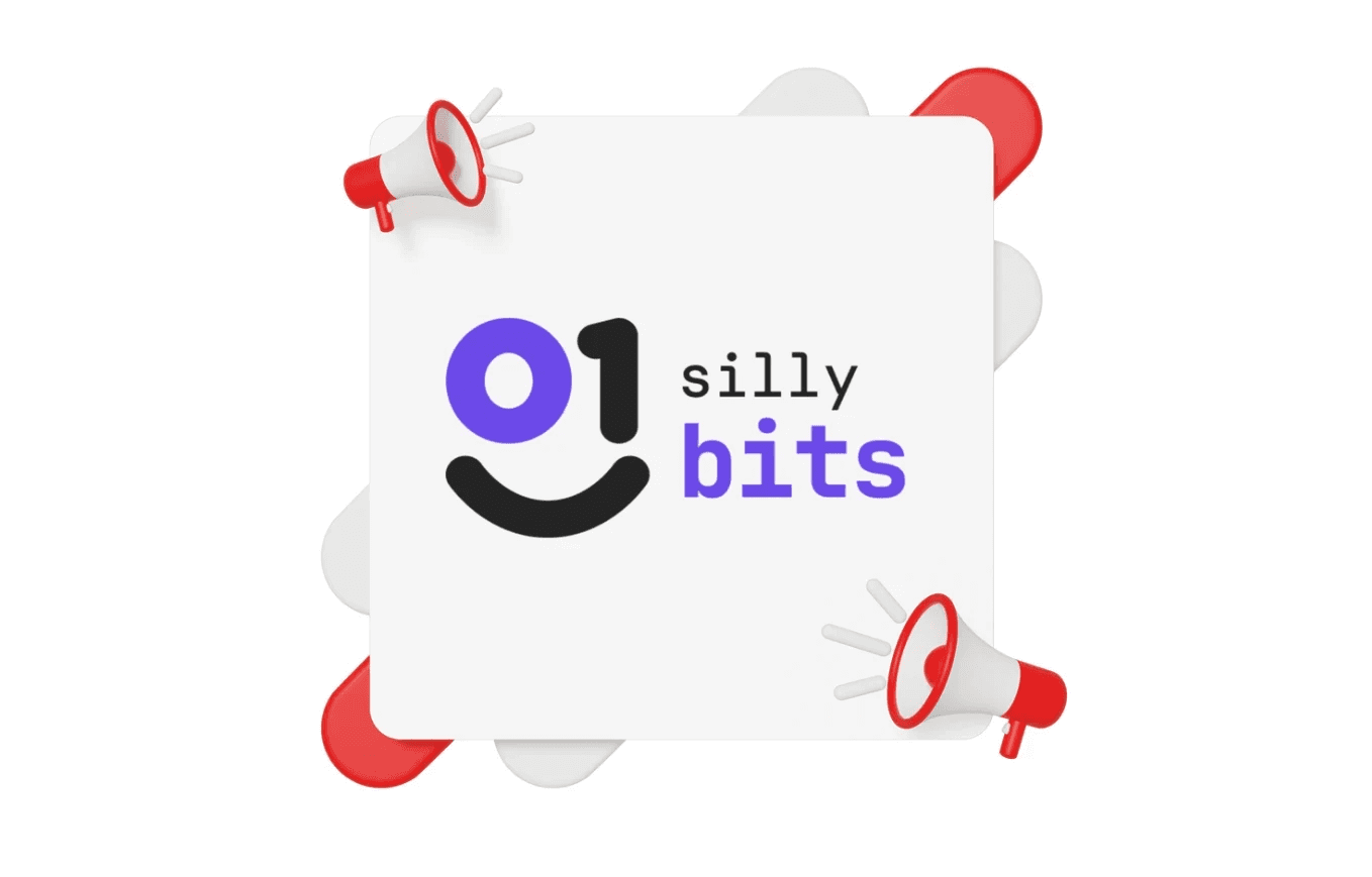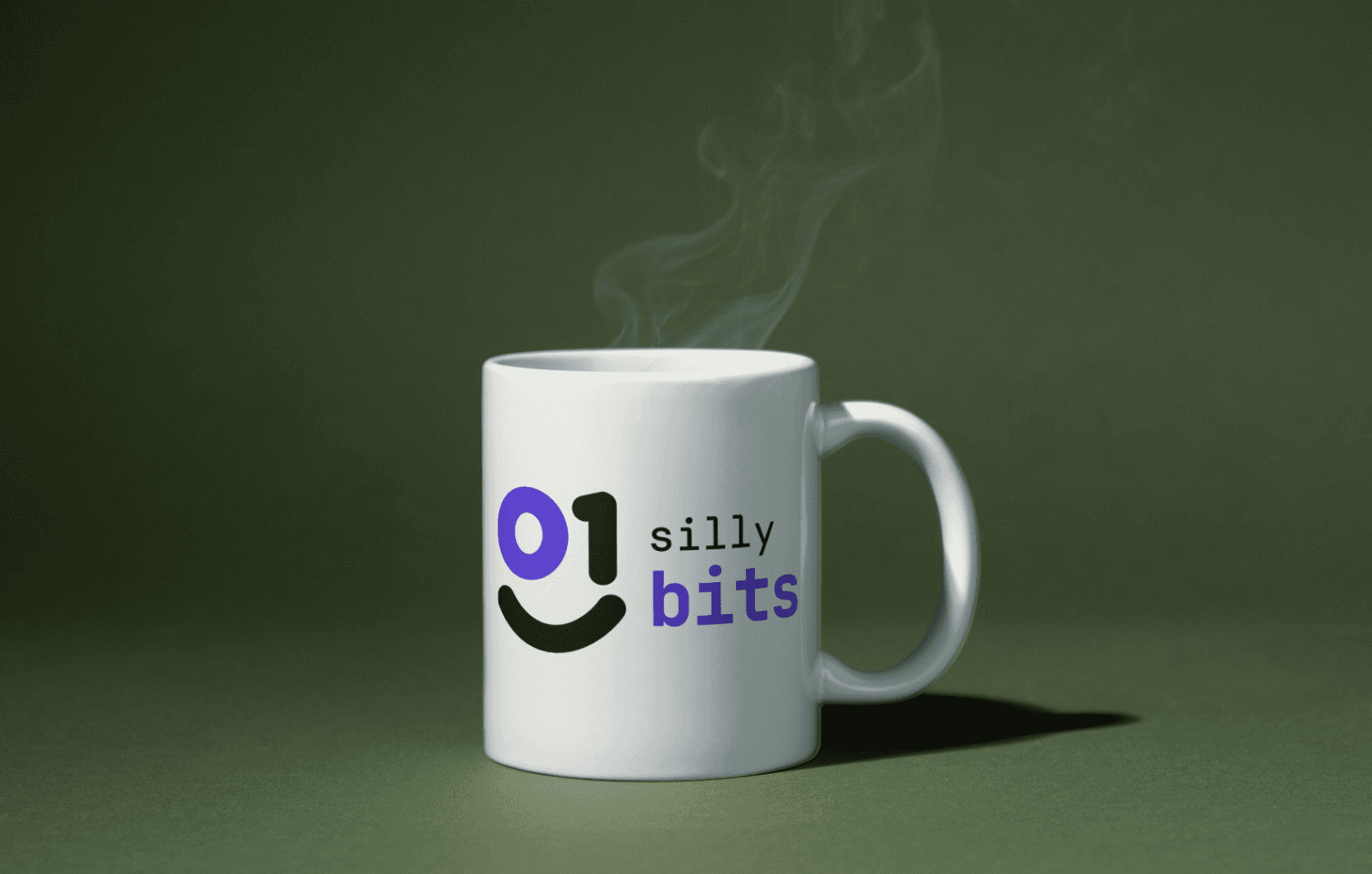 Logomark: Custom monogram combining “0” and “1” as a tech nod, forming an abstract smiling face. Typography: • “silly” — lowercase, light serif: adds contrast and friendliness. • “bits” — bold modern sans-serif: emphasizes structure and clarity. Colors: • Deep Violet (#5A33DB): tech-forward and modern. • Blacll: for balance and readability.